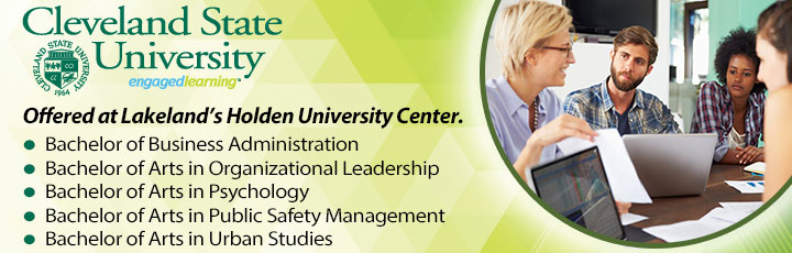 Cleveland State University (CSU) in partnership with Lakeland's Holden University Center offers convenient access to complete your degree, right here in Lake County! Choose from a variety of programs, ideal for working students. Prepare for leadership roles in organizational settings with advanced exposure to multiple areas of business. Learn management and communication skills and understand the growth and decline of businesses and neighborhoods.