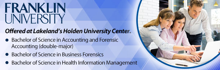 Franklin University in partnership with Lakeland's Holden University Center offers convenient access to complete your degree, right here in Lake County! You will learn a variety of important skills in high demand majors. Take your first three years at Lakeland, paying the lower tuition rate and transfer up to 84 semester hours to Franklin University!