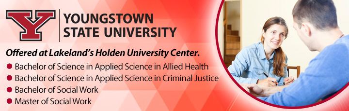 Youngstown State University (YSU) in partnership with Lakeland's Holden University Center offers convenient access to complete your degree, right here in Lake County! YSU's partnership programs offer a variety of delivery methods to accommodate your busy schedule.