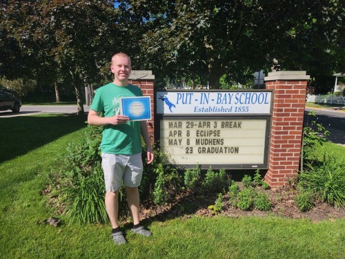 This year's competition had four high school winners including Emil Michael whose project, Ohio's Salt Mining, was forwarded on to the national competition. Here is Emil outside his school.
