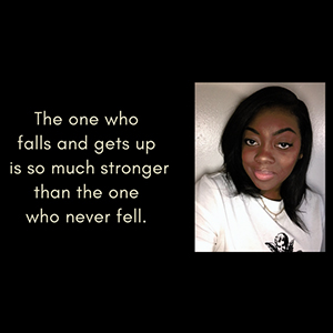 Amber has often stopped in the Women's Center to say hello. She seems like a typical college student: 19 years old, enthusiastic about her classes, hoping she's been studying enough, super excited about her new role as VP of Public Relations and Media in the honor society. She seems to be on the path to success. But it wasn't always that way for Amber.