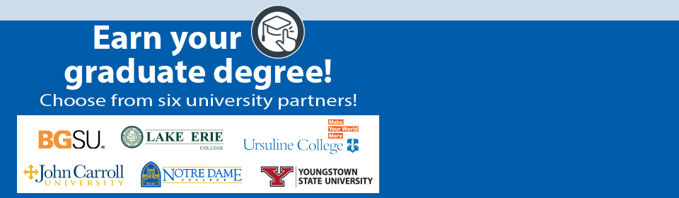 Increase your earning potential with a graduate degree from Ohio colleges and universities, all right here on Lakeland's campus. Contact us to learn more.