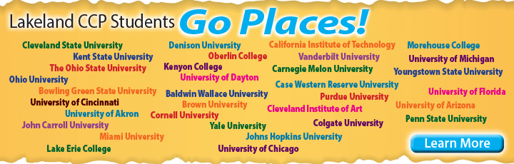 Lakeland Community College's College Credit Plus Program (CCP) offers high school students the opportunity to enroll at Lakeland on a part-time or full-time basis, and earn college credit which may also be used to fulfill their high school graduation requirements.